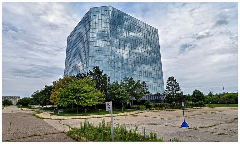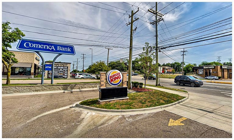 Farmington Hills est une ville du comté d'Oakland, en banlieue de Détroit dans l'État du Michigan, aux États-Unis. Farmington Hills figure régulièrement parmi les villes les plus sûres des États-Unis. J’ai choisi de documenter les zones commerciales de cette ville d’environ 90 000 habitants en utilisant Google Street View et en parcourant les ruelles et allées des centres commerciaux qui longent certaines des artères principales de la ville.