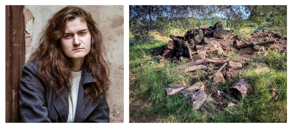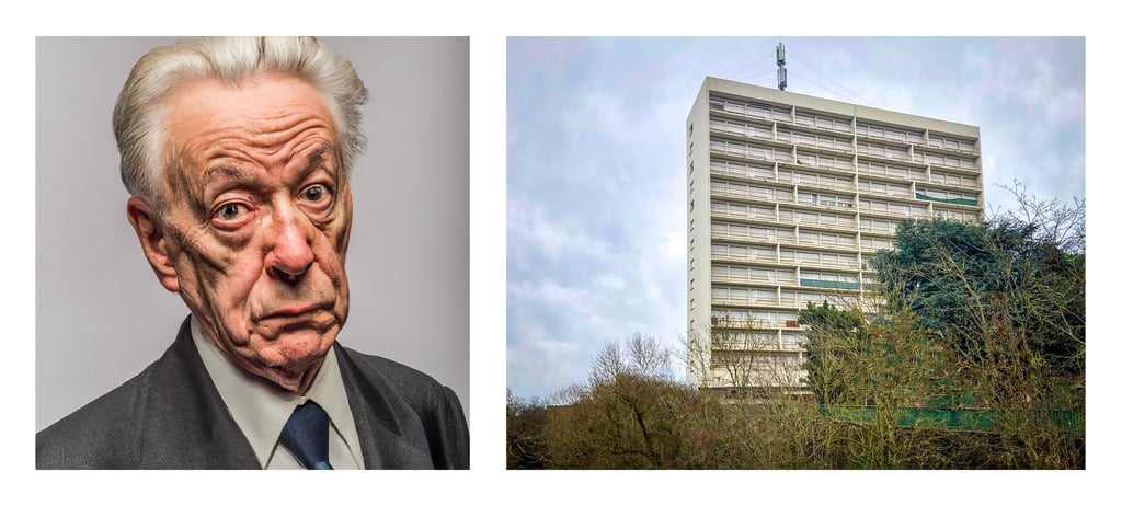 Un portrait généré par IA associé à une photographie compose chacun des diptyques de cette série.